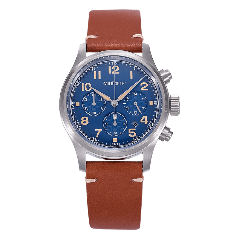 This Milifortic solar-powered chronograph combines eco-friendly technology with versatile functionality. Harnessing light to keep running, it eliminates the need for battery changes, offering hassle-free reliability. The chronograph feature adds precise timing capability, while its multiple sub-dials make it a practical tool for everyday wear and adventures alike.