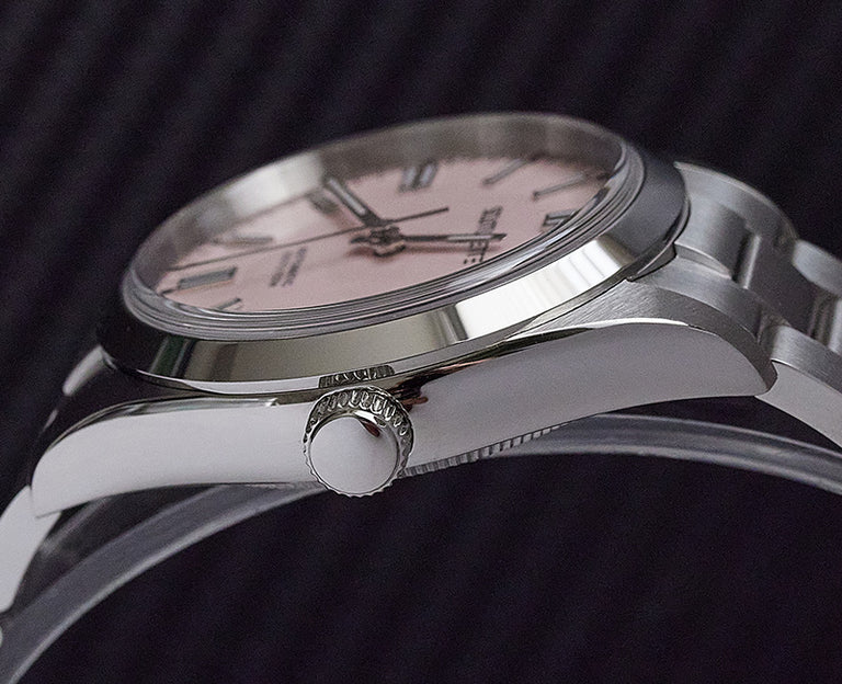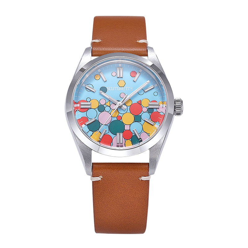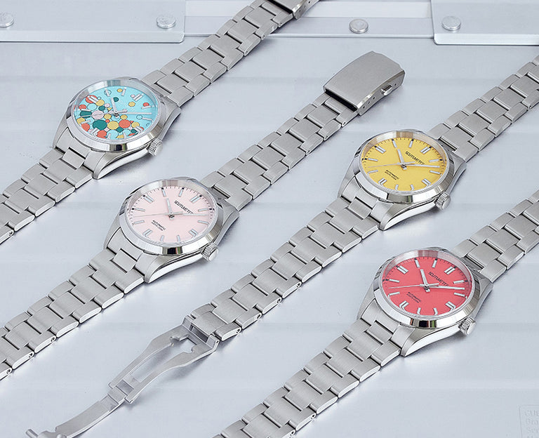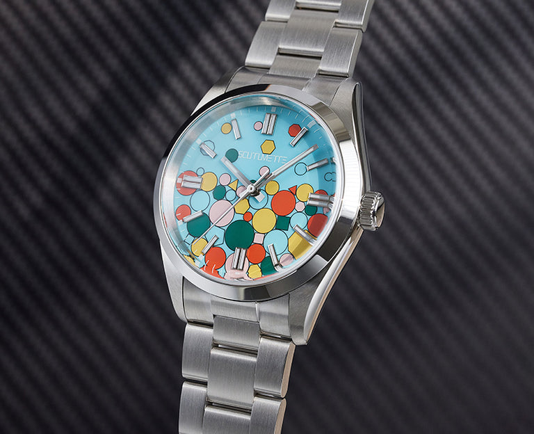 This celebration dial watch is all about fun and personality while keeping that solid, everyday-wear vibe. With its vibrant dial colors—whether it’s sunshine yellow, soft pink, playful multi-color, or bold red—it instantly stands out on the wrist. Paired with a brushed stainless-steel case and bracelet, it feels sturdy and premium but never too serious. It’s an automatic piece that can handle real-world use (200m water resistance!), yet still brings a smile every time you look at it. A perfect mix of reliability and pure joy in a watch.