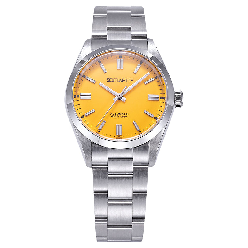 This celebration dial watch is all about fun and personality while keeping that solid, everyday-wear vibe. With its vibrant dial colors—whether it’s sunshine yellow, soft pink, playful multi-color, or bold red—it instantly stands out on the wrist. Paired with a brushed stainless-steel case and bracelet, it feels sturdy and premium but never too serious. It’s an automatic piece that can handle real-world use (200m water resistance!), yet still brings a smile every time you look at it. A perfect mix of reliability and pure joy in a watch.